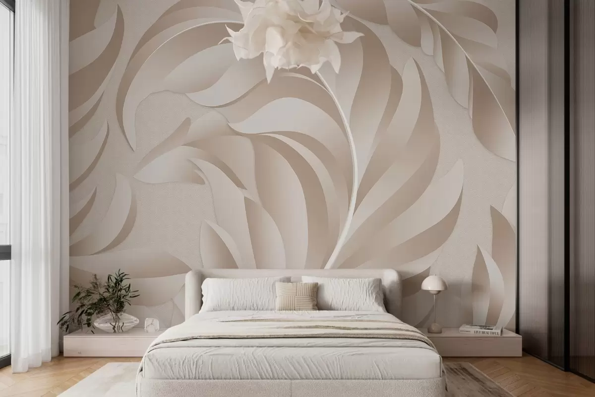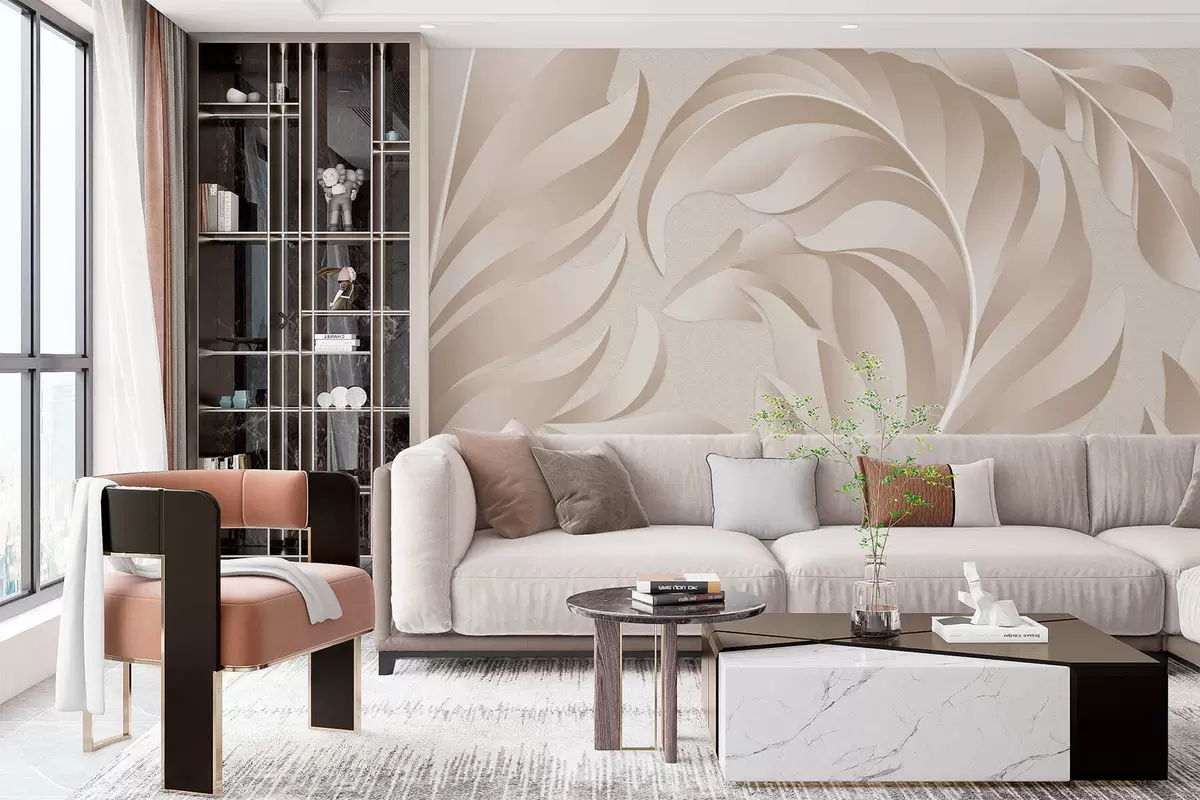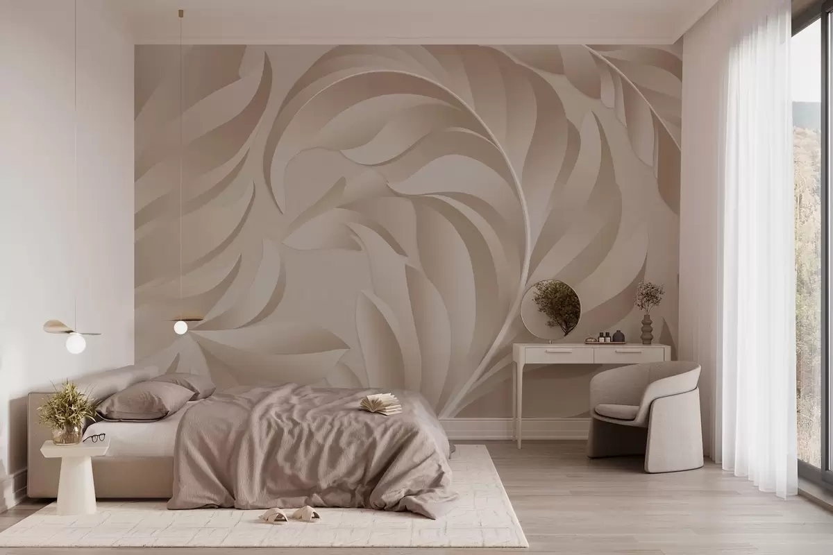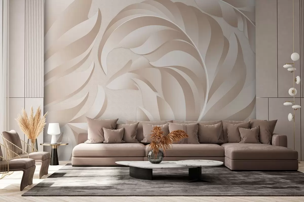 Fototapety veľké textúrované pierka v béžových a púdrových odtieňoch Nr. w05231