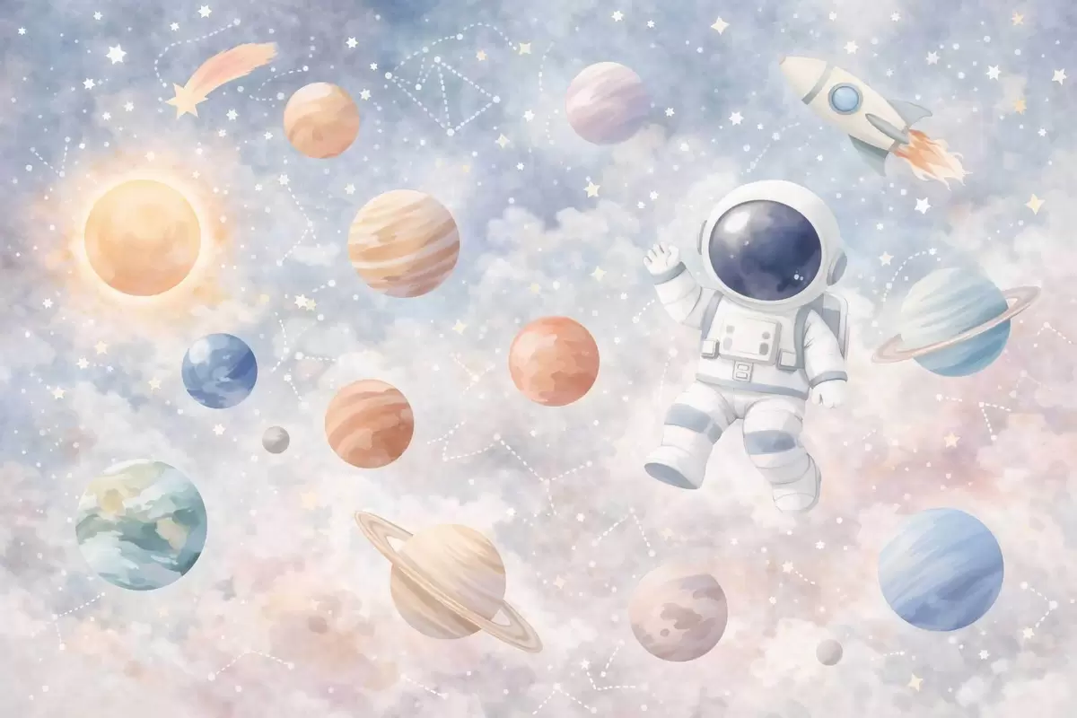 Fototapety malý astronaut medzi planétami a hviezdami Nr. w05233