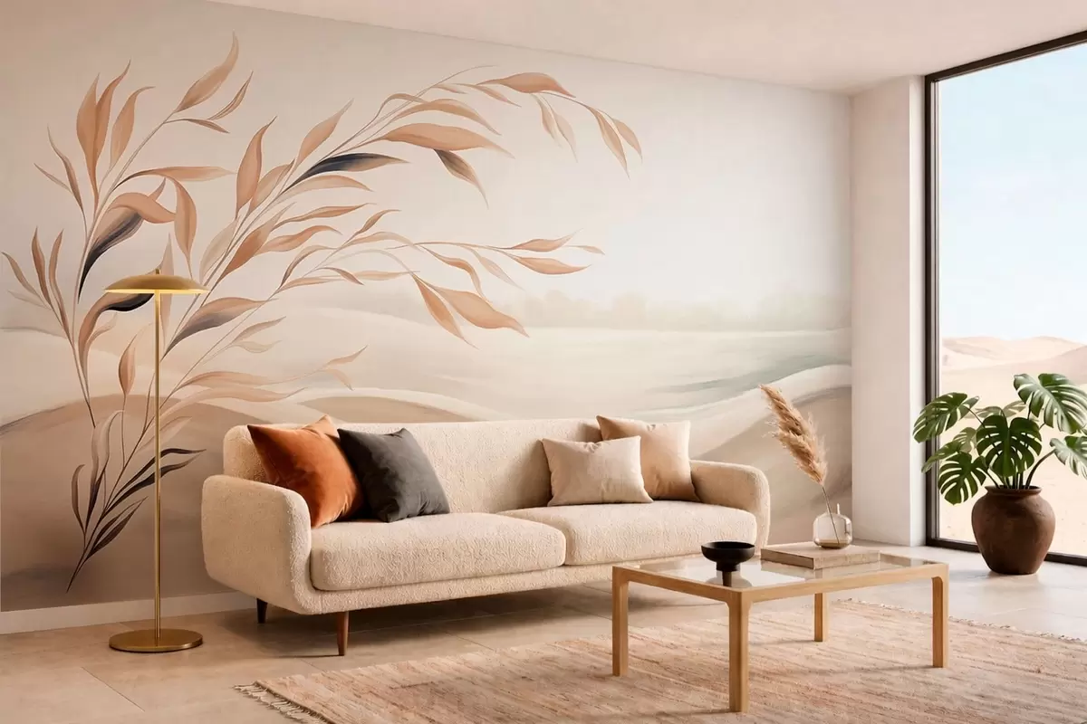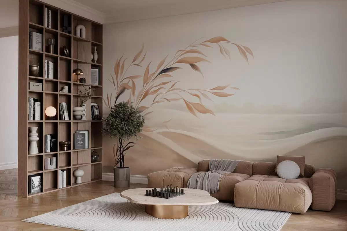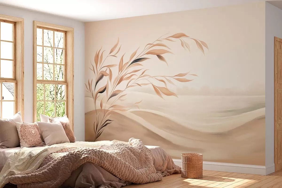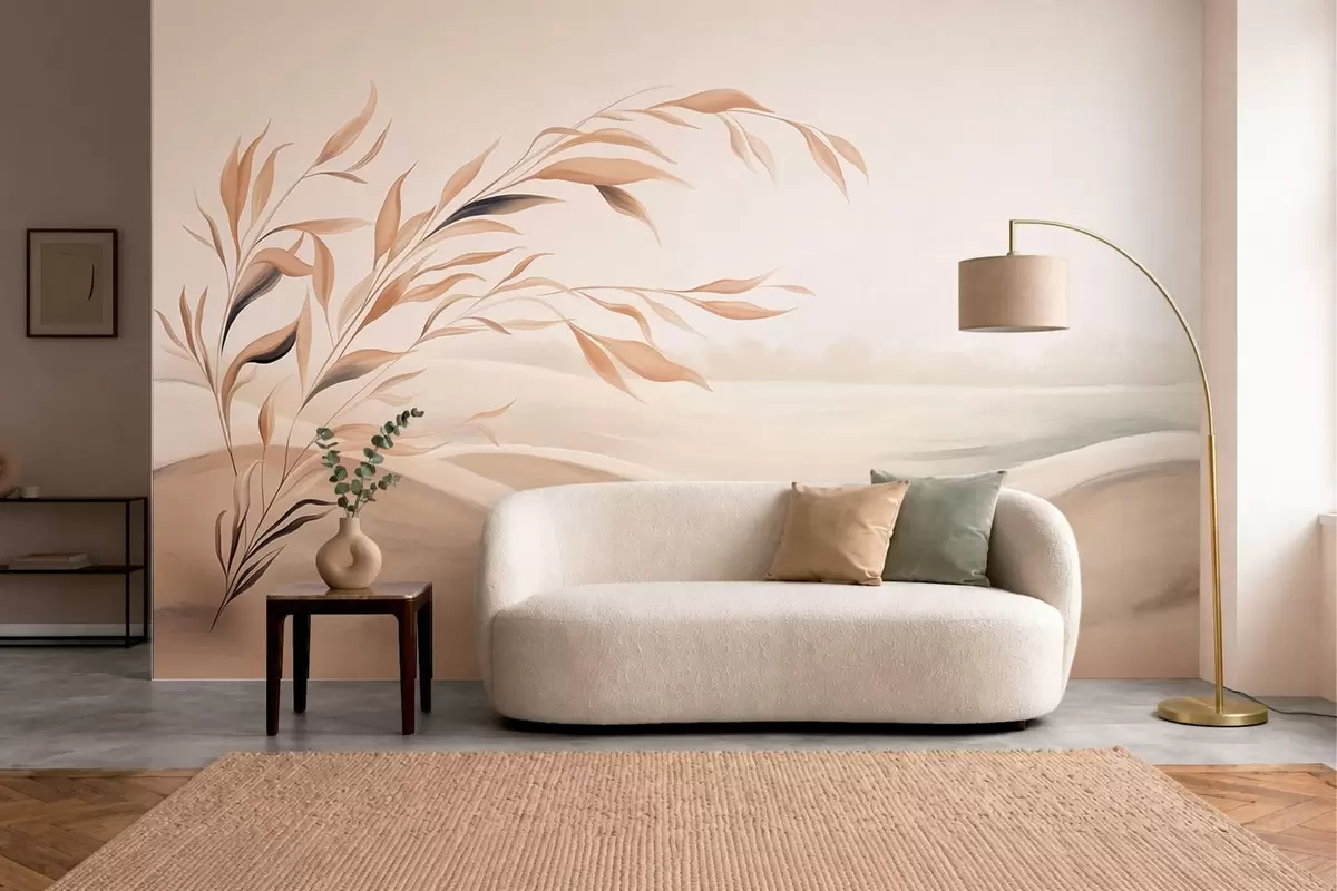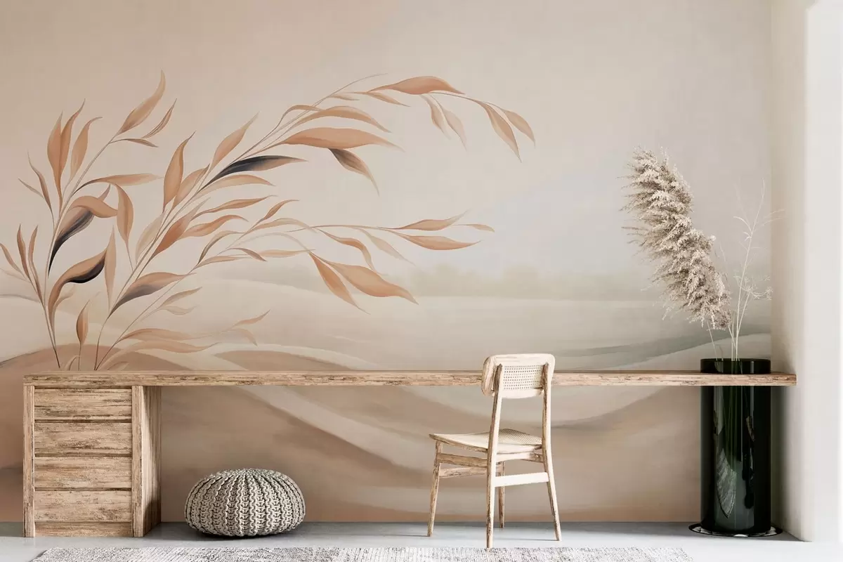 Fototapety Jemná krajina s konárom nad kopcami v svetlo béžových odtieňoch Nr. w05297