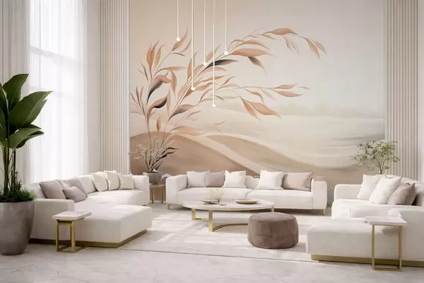 Fototapety Jemná krajina s konárom nad kopcami v svetlo béžových odtieňoch Nr. w05297