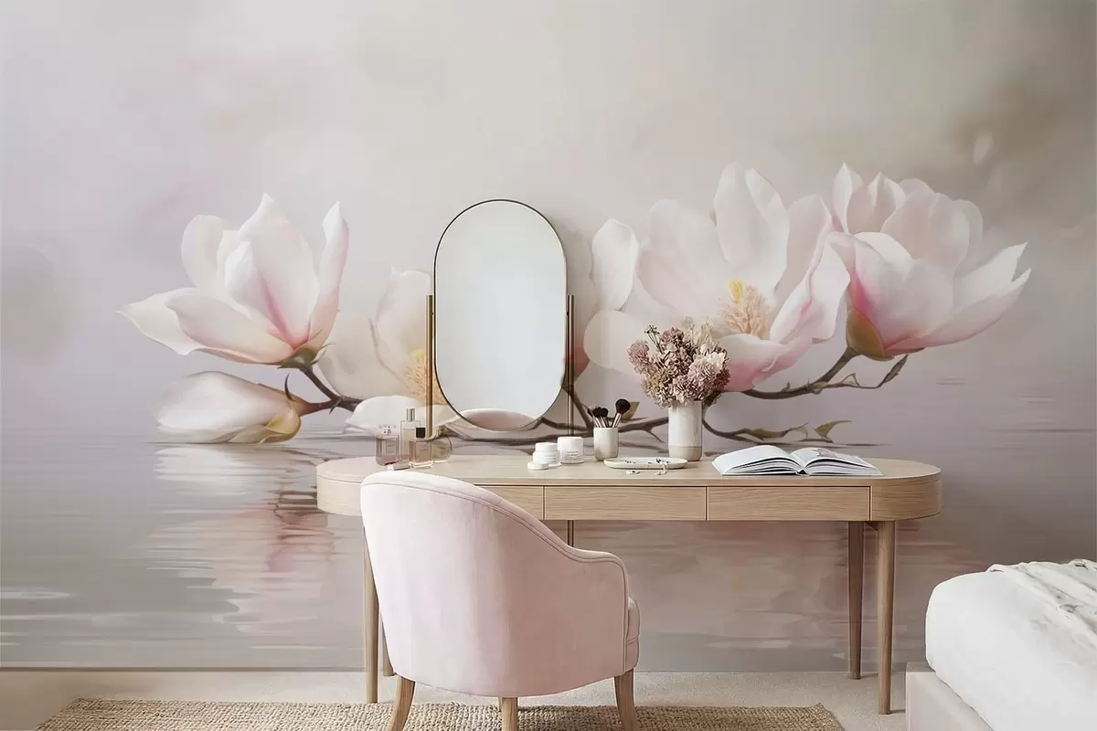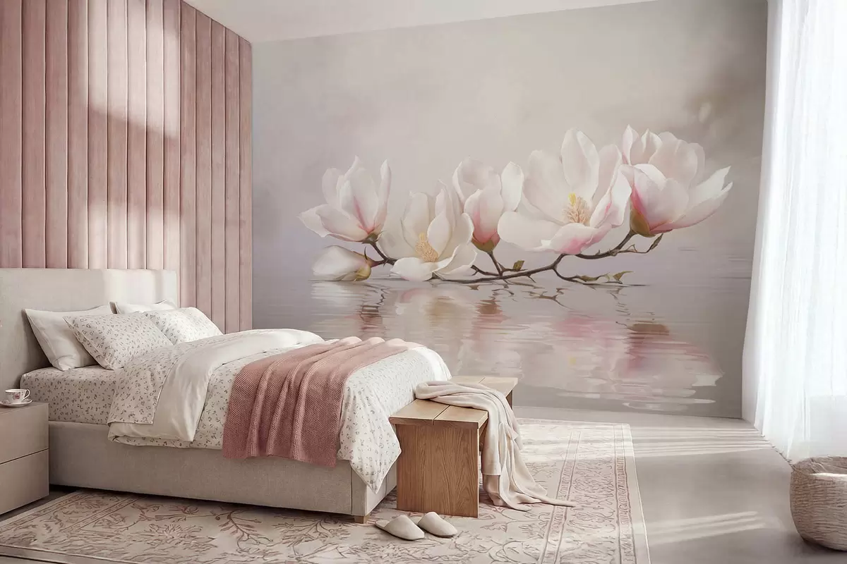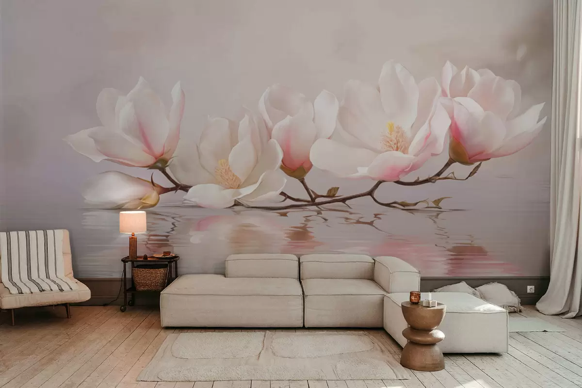 Fototapety Vetva magnólie s kvetmi nad odrazom pokojnej vody Nr. w05353v1