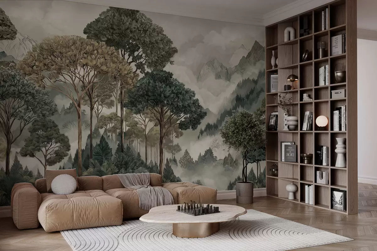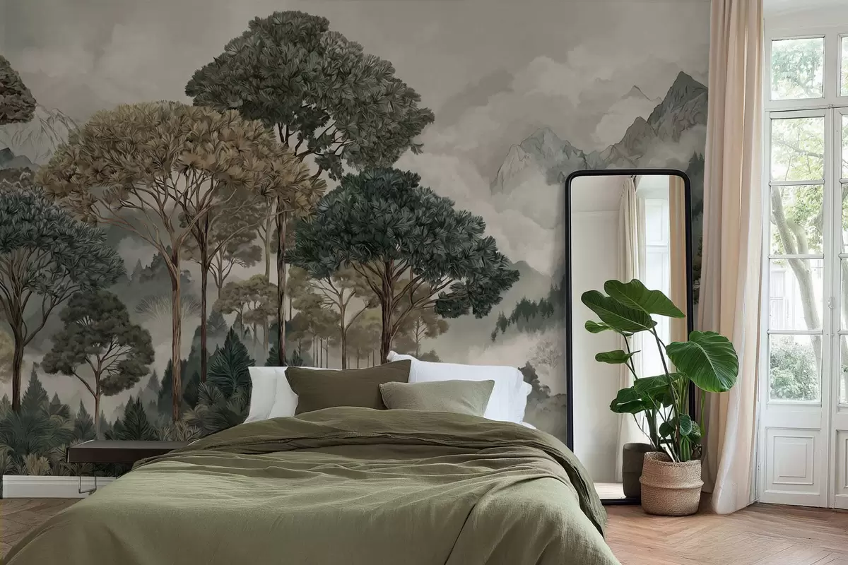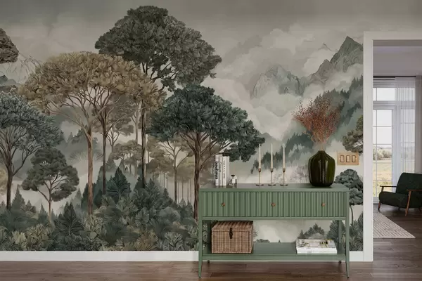 Fototapety Horská krajina s lesom v jemných odtieňoch Nr. w05410v1
