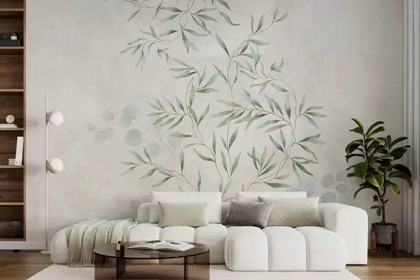 Fototapety Jemný botanický vzor s tenkými vetvičkami na svetlom pozadí Nr. w05424