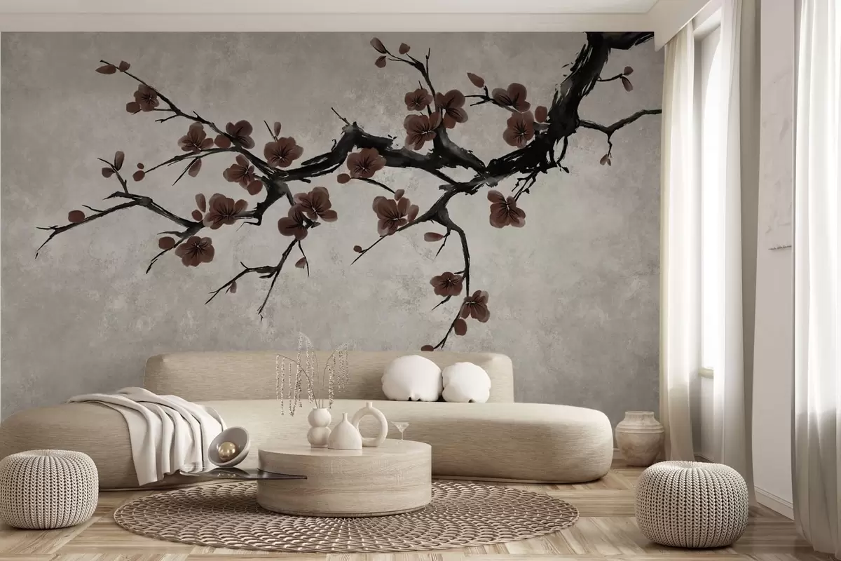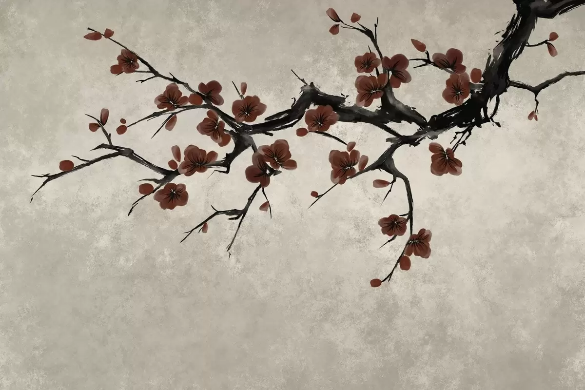 Fototapety Vetvička s tmavočervenými kvetmi na neutrálnom pozadí Nr. w05425v1