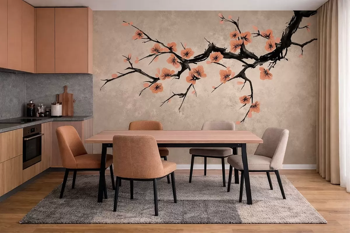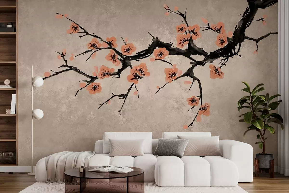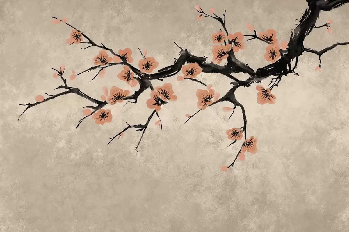 Fototapety Vetvička s broskyňovými kvetmi na textúrovanom pozadí Nr. w05425v3