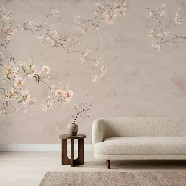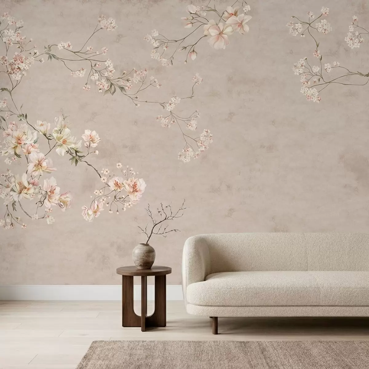 Fototapety Krehké kvetinové vetvičky v štýle chinoiserie na svetlom pozadí Nr. w05427