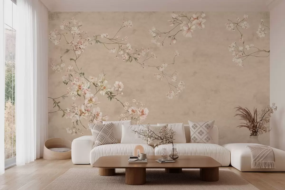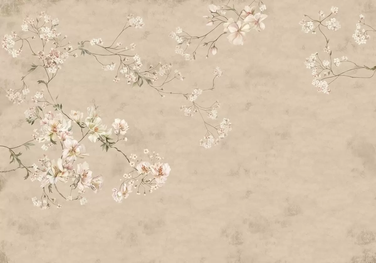 Fototapety Kvetinové motívy v štýle chinoiserie na teplom béžovom pozadí Nr. w05427v2