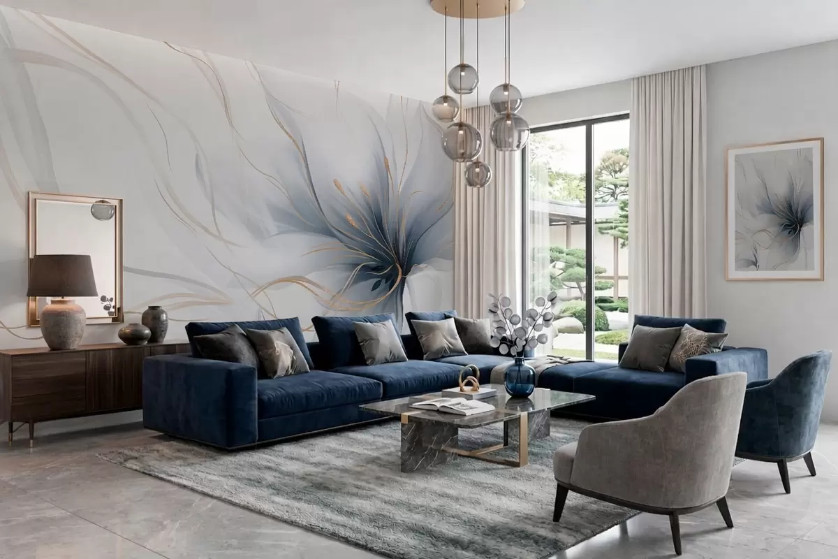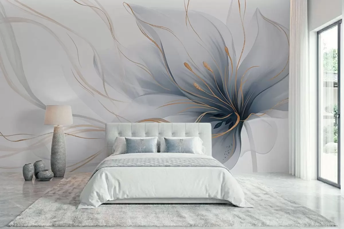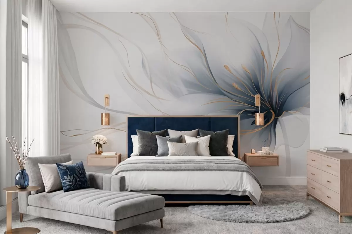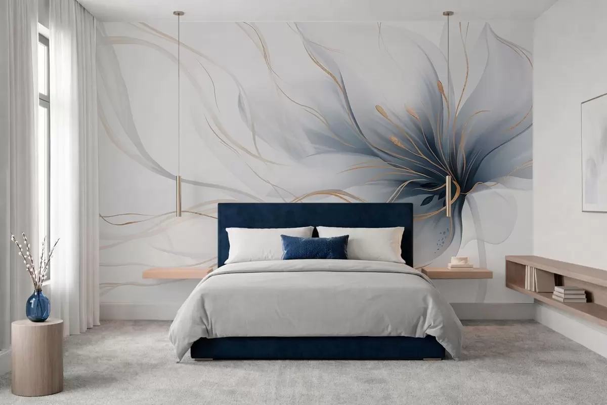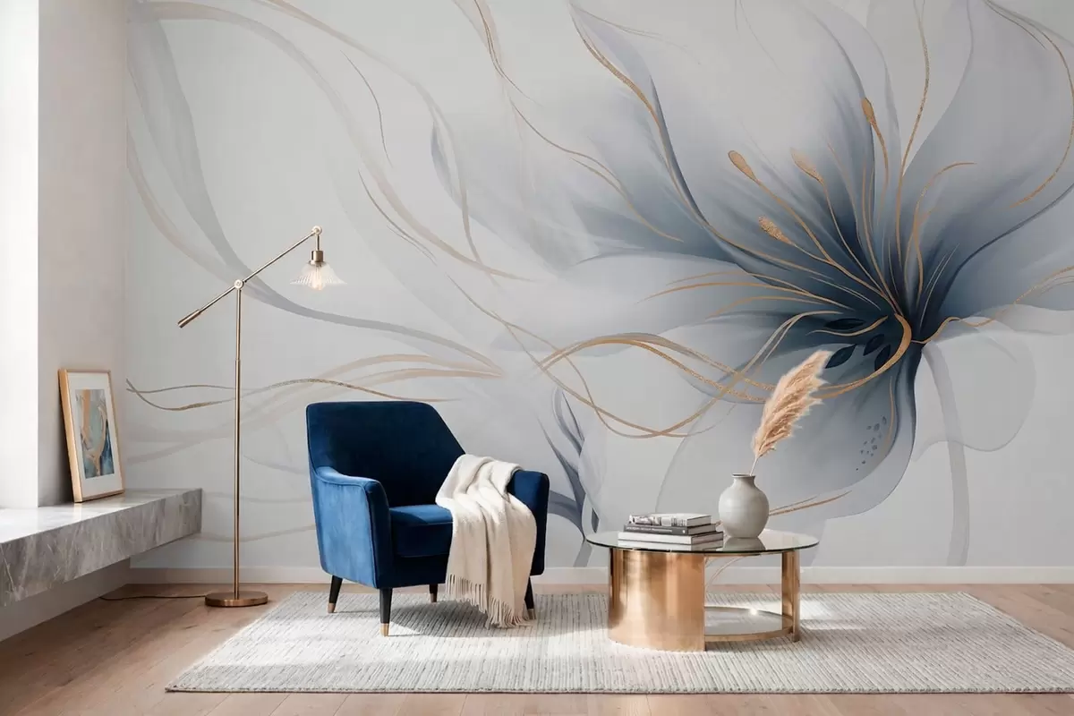 Fototapety Abstraktný modrý kvet s vlniacimi sa líniami v štýle Fluid Art Nr. w05428