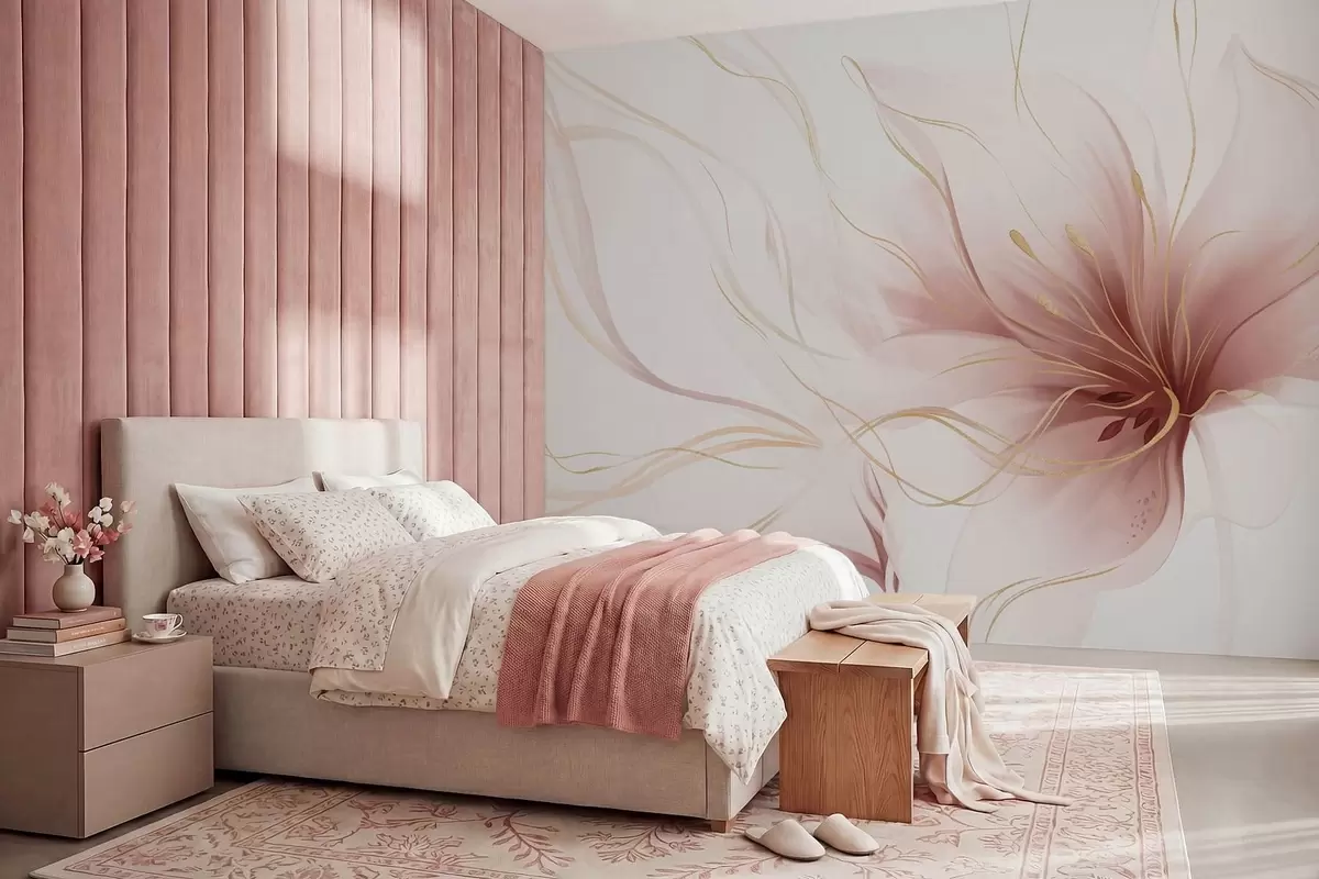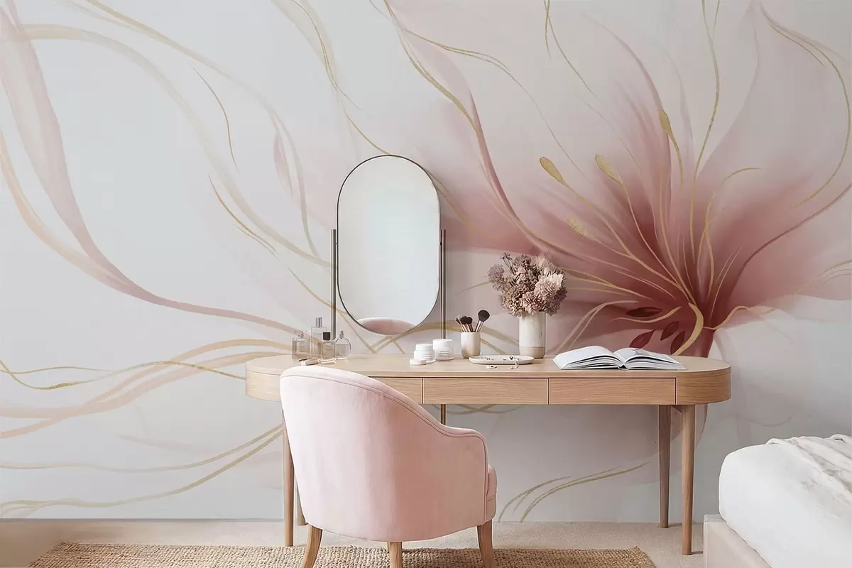 Fototapety Abstraktný ružový kvet s vlniacimi sa líniami v štýle Fluid Art Nr. w05428v1