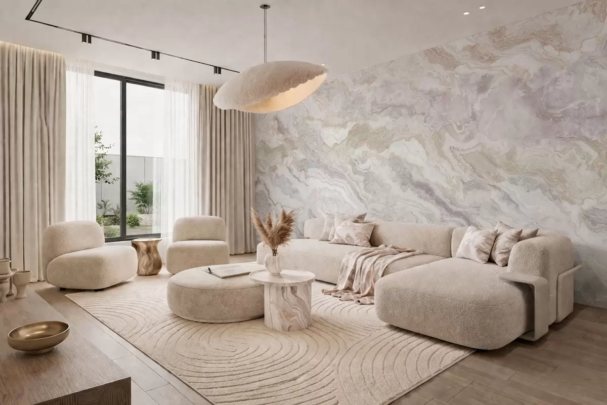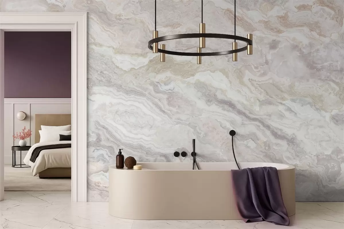 Fototapety Svetlý onyx s vlniacimi sa béžovými a sivými vrstvami Nr. w05430