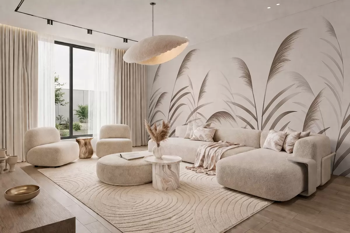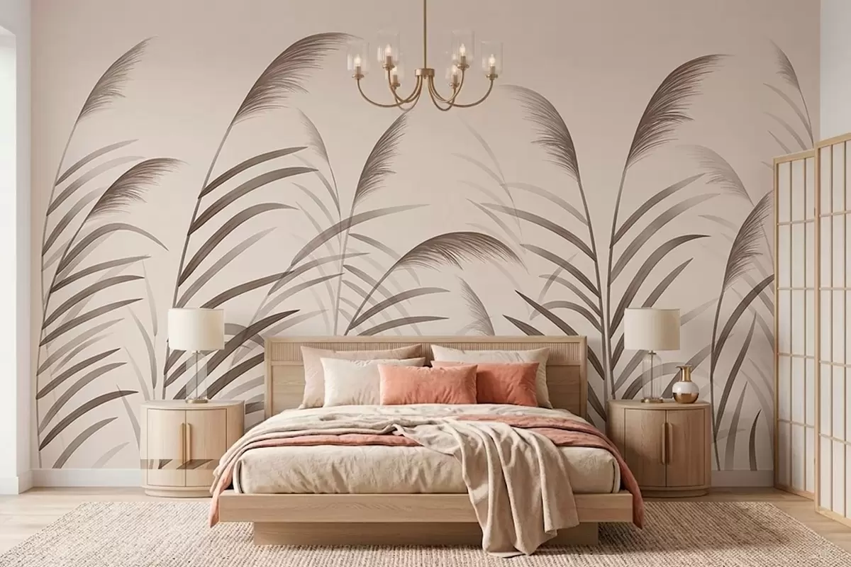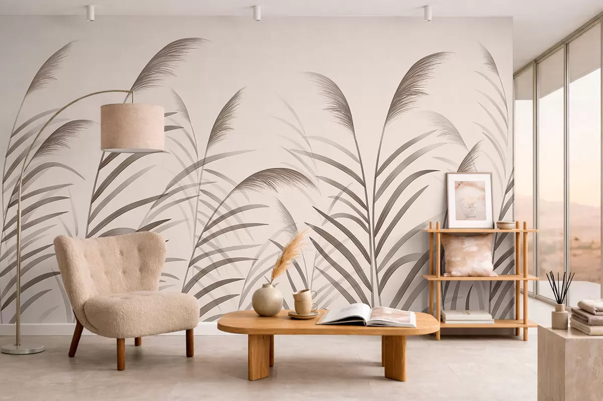 Fototapety Minimalistické siluety z rákosia v béžových odtieňoch Nr. w05432
