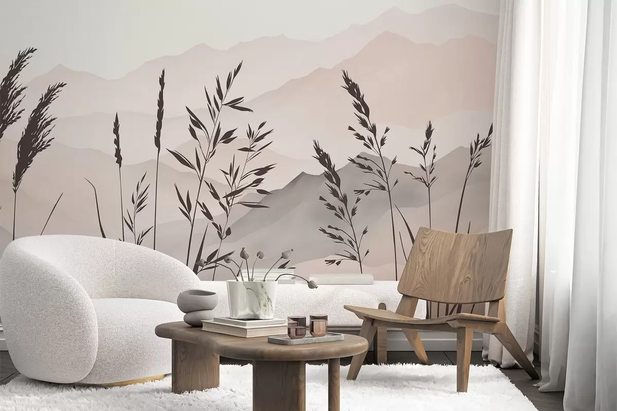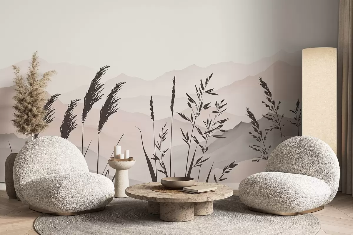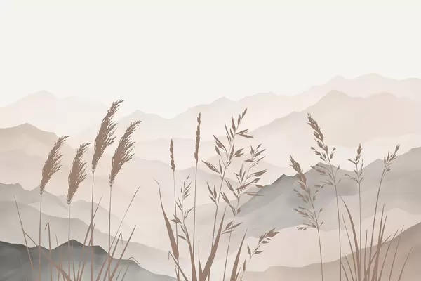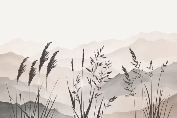 Fototapety Siluety trávy na pozadí hôr Nr. w05501