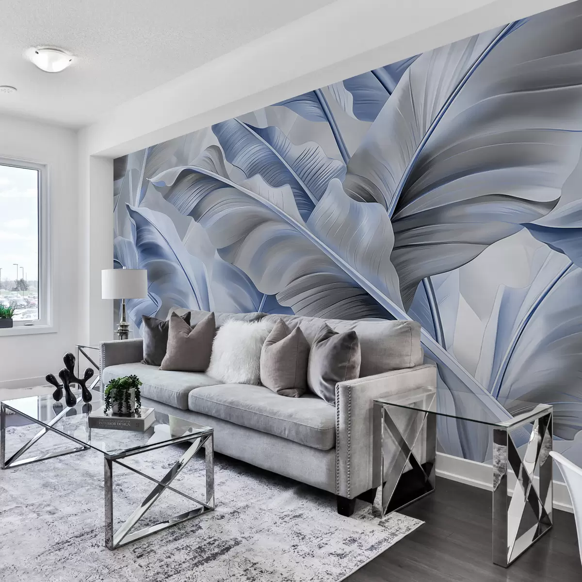 Fototapety luxusné veľké banánové listy v šedo-modrých farbách Nr. w07876v1