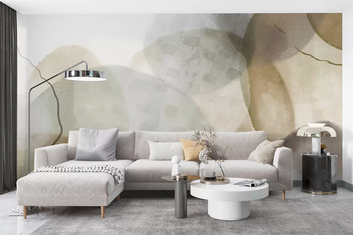 Fototapety Mäkké akvarelové abstraktné tvary v odtieňoch hnedej, sépiovej a bielej Nr. w07926v1