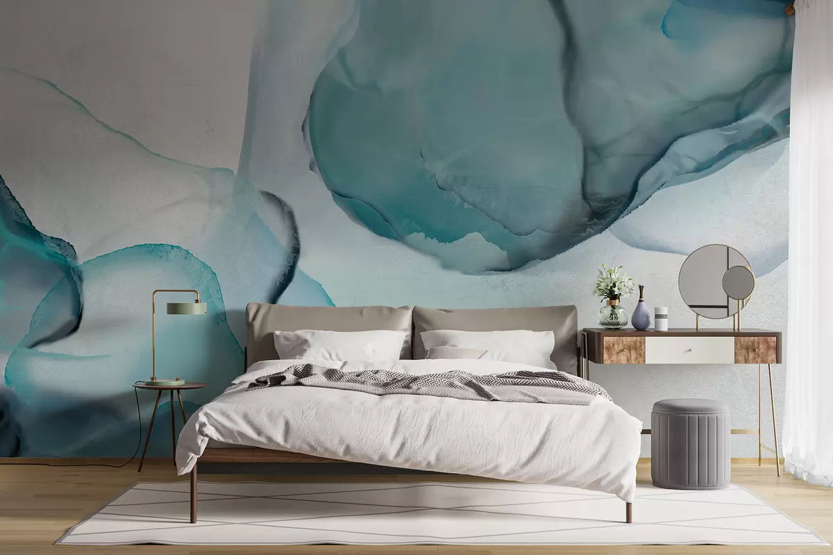 Fototapety Abstraktné modro-biele fluidum, pripomínajúce tečúcu vodu a atrament Nr. w07927