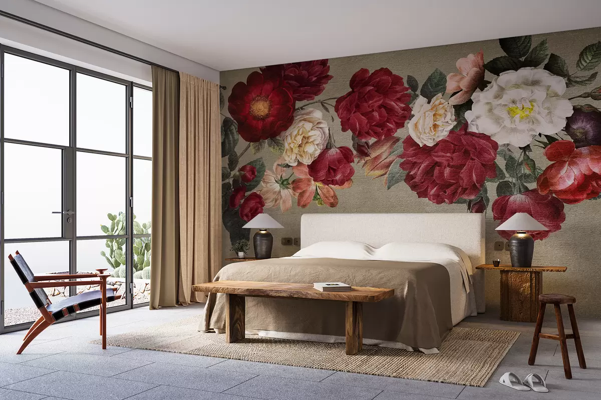 Fototapety Vintage umenie živé kvety s listami na neutrálnom textúrovanom pozadí Nr. w07929