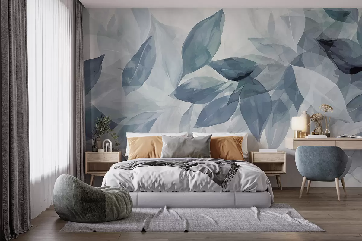 Fototapety Jemné sivobiele akvarelové listy s rozmazaným, éterickým pozadím Nr. w07981