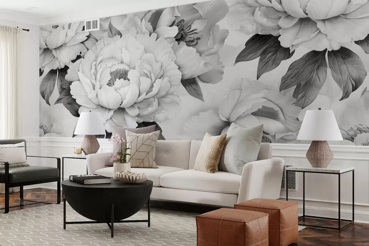 Fototapety Čierne a biele pivonky Nr. w08064
