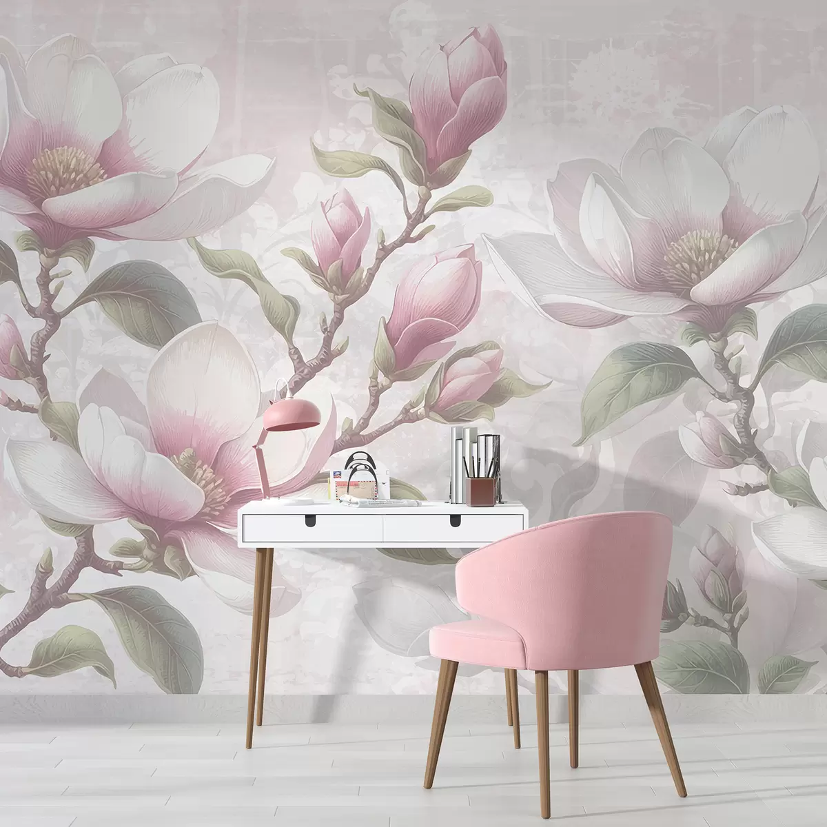 Fototapety Jemné ružové kvety magnólie v plnom kvete na jemnom, rozostrenom pozadí Nr. w08216
