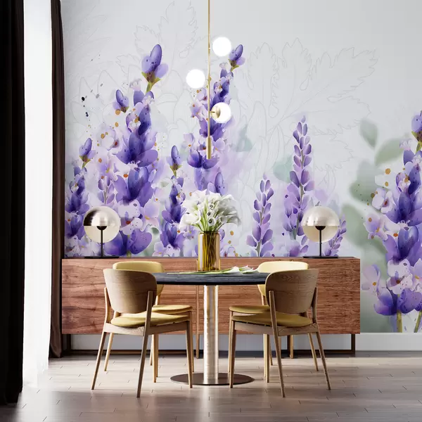 Fototapety Fialové kvety levandule na poli s jemným zaostrením a rozmazaným pozadím Nr. w08231