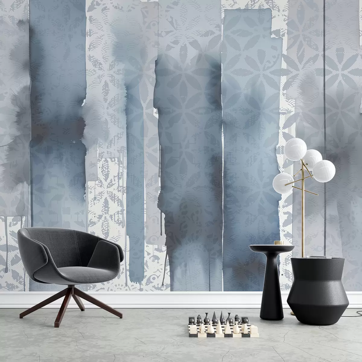 Fototapety Akvarelová abstraktná tlač s veľkými modrými ťahmi štetca a vintage vzorom Nr. w08267