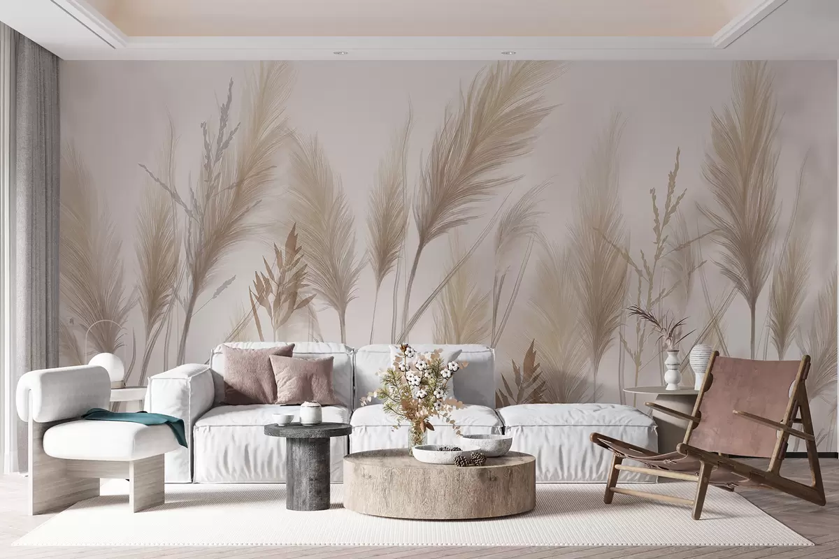Fototapety Vysoké béžové steblá trávy kolíšuce sa vo vetre na jemnom, svetlom pozadí Nr. w08268