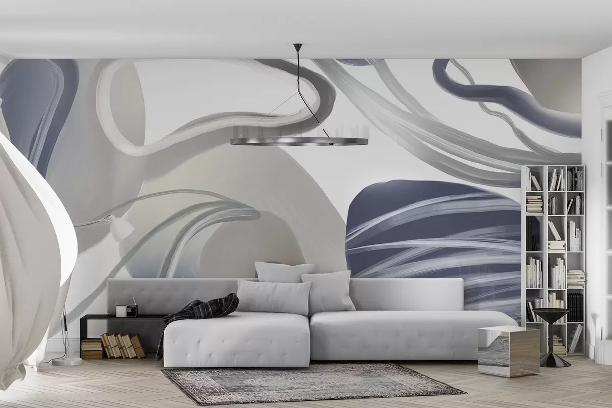 Fototapety Abstraktné víriace tvary a krivky v tmavomodrých odtieňoch vytvárajúce dynamickú a plynulú kompozíciu Nr. w08279v1