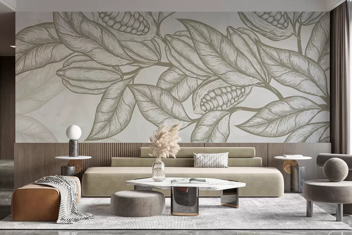 Fototapety Detailná kresba listov kakaovníka a listov v prírodnom, organickom prevedení Nr. w08334