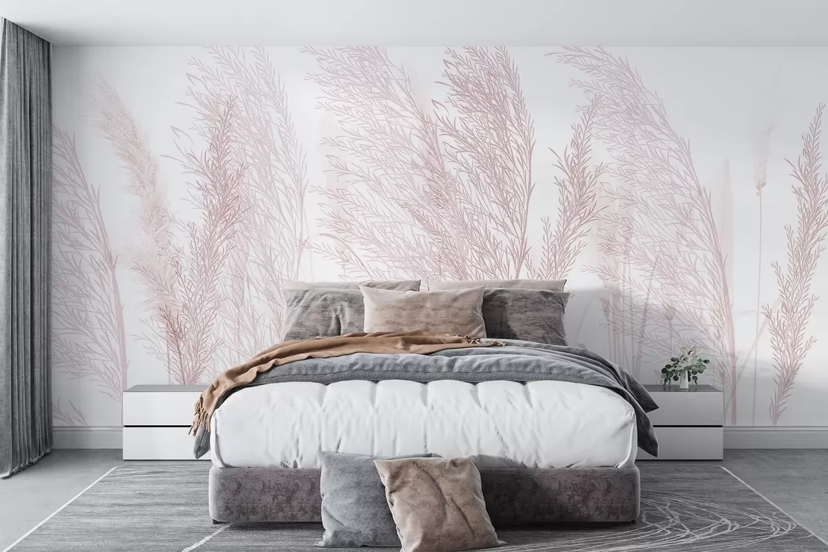 Fototapety Jemná pastelová ružová tráva pampas na bielom pozadí minimalistická kompozícia Nr. w08351
