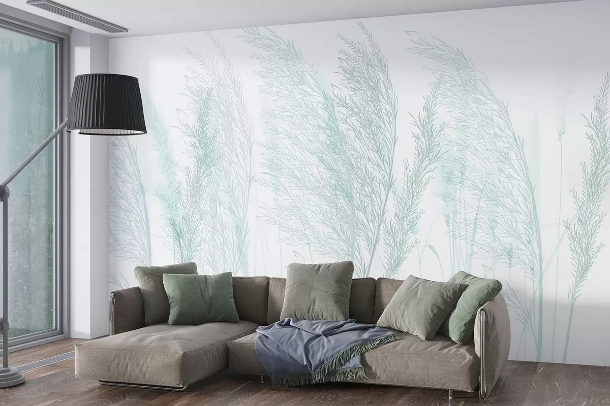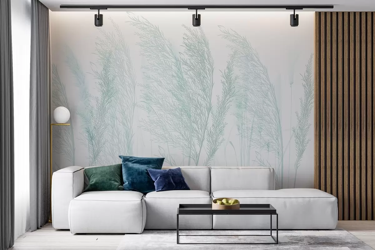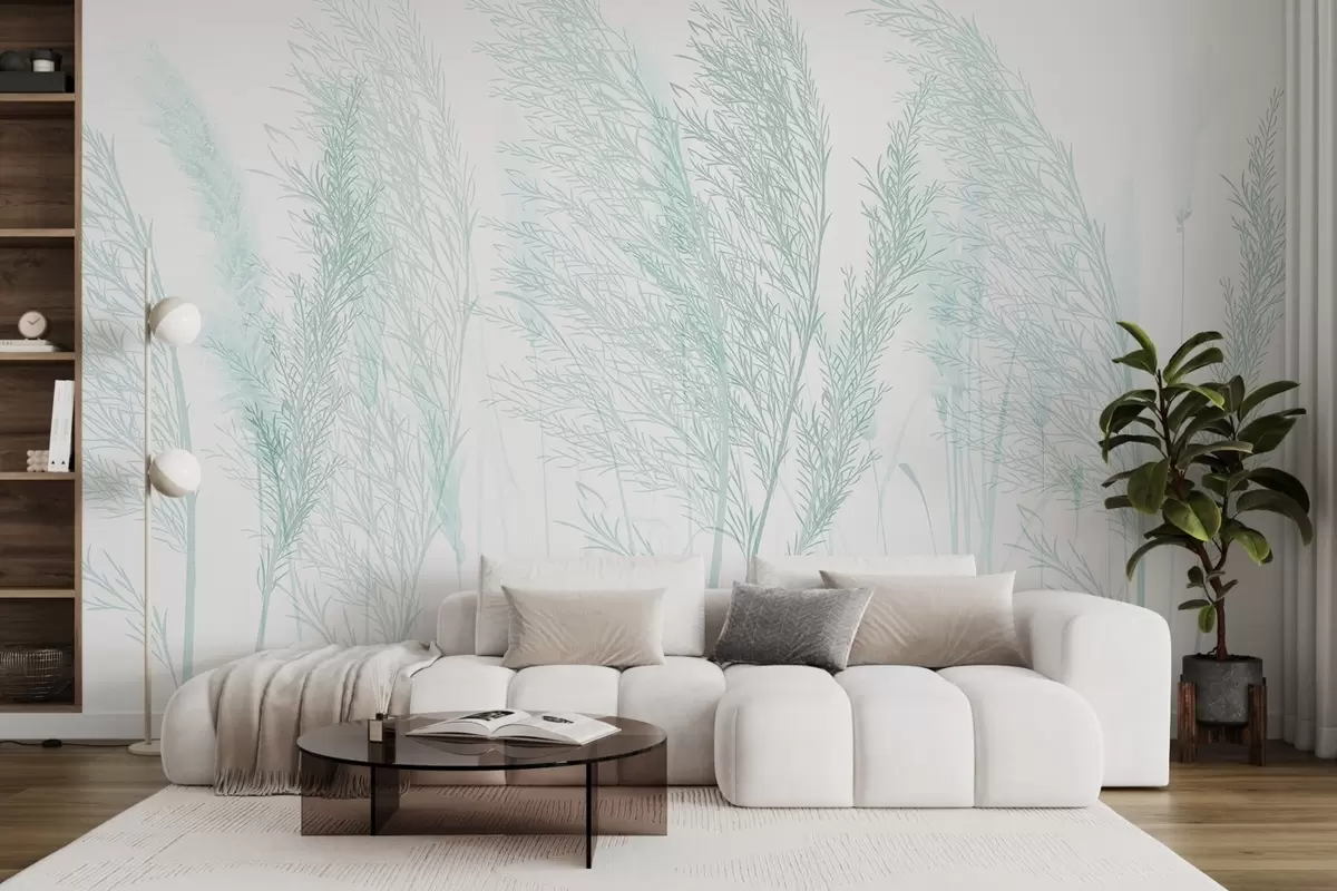 Fototapety Jemná pastelová tyrkysová tráva pampas na bielom pozadí minimalistická kompozícia Nr. w08351v2