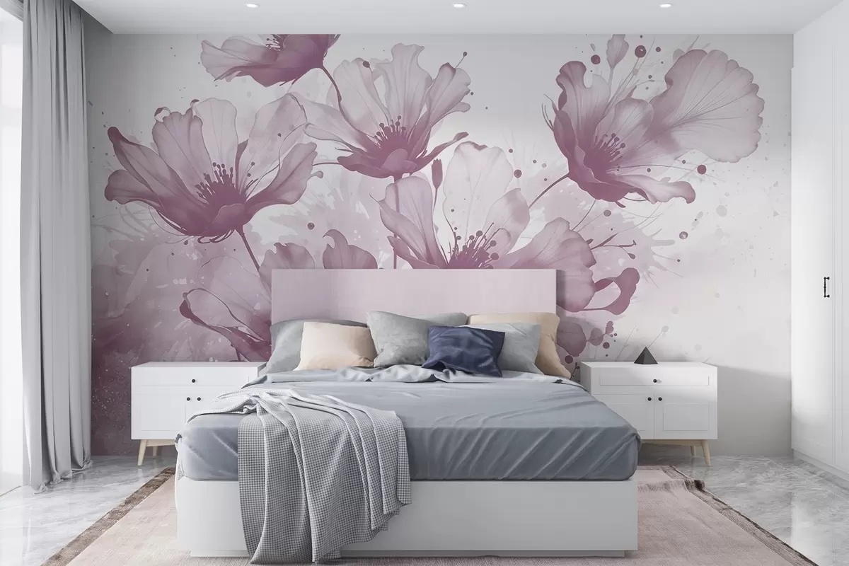 Fototapety Jemné ružové kvety s jemnými, rozmazanými okvetnými lístkami a akvarelovými škvrnami na svetlom pozadí Nr. w08376v2