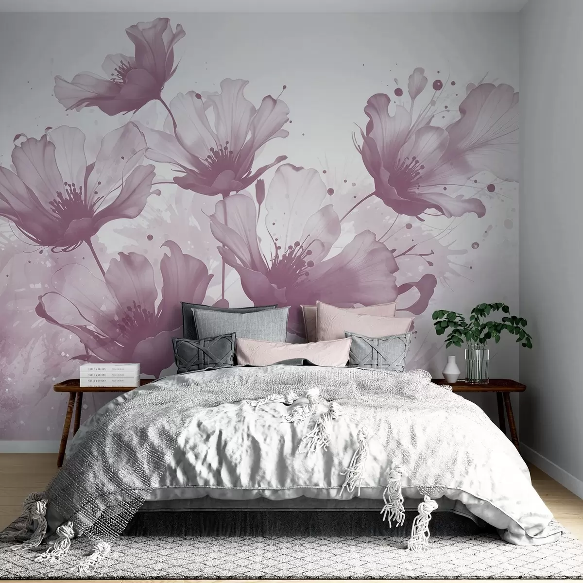 Fototapety Jemné ružové kvety s jemnými, rozmazanými okvetnými lístkami a akvarelovými škvrnami na svetlom pozadí Nr. w08376v2