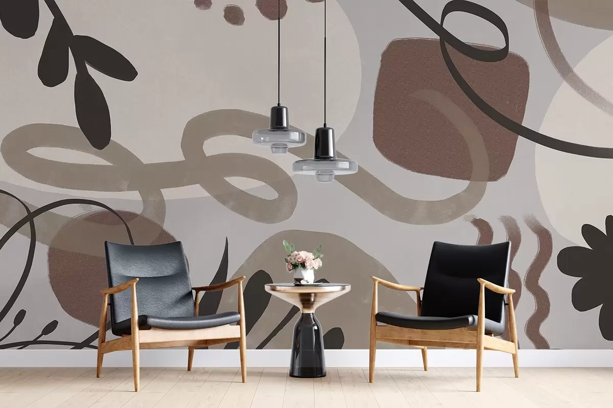 Fototapety Abstraktná textúrovaná minimalistická moderná potlač s tvarmi v zemitých tónoch hnedej, béžovej a čiernej Nr. w08384