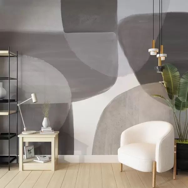 Fototapety Monochromatická abstraktná potlač s prekrývajúcimi sa minimalistickými tvarmi a formami v odtieňoch sivej a béžovej farby Nr. w08410v1