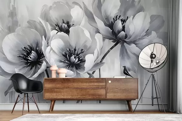 Fototapety Jednofarebné kvety tulipánov s jemnými, rozmazanými okvetnými lístkami na svetlom pozadí Nr. w08418