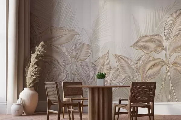 Fototapety Elegantné biele a béžové palmové listy na svetlom textúrovanom pozadí Nr. w08434