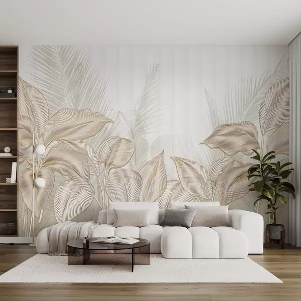 Fototapety Elegantné biele a béžové palmové listy na svetlom textúrovanom pozadí Nr. w08434