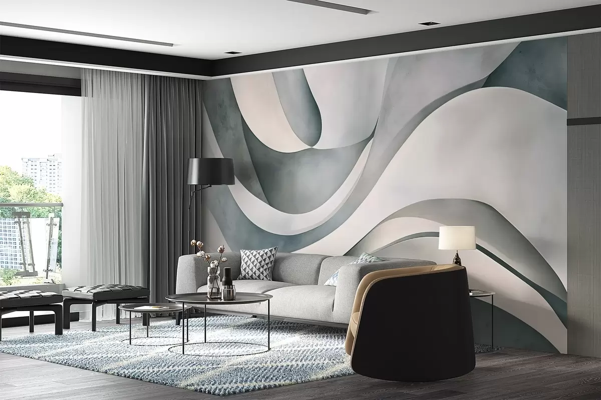 Fototapety Biele, modré a sivé zakrivené tvary a formy vytvárajúce abstraktnú texturálnu modernú minimalistickú tlač Nr. w08439v1