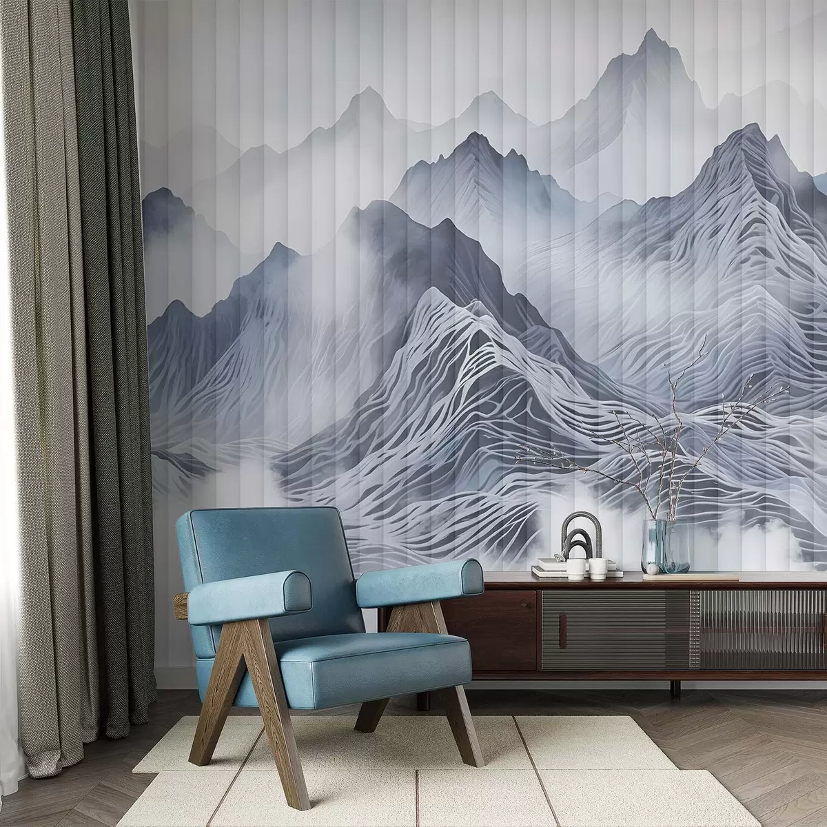 Fototapety Hmlistá abstraktná horská krajina s kopcami a vrcholmi v odtieňoch sivej a bielej Nr. w08440