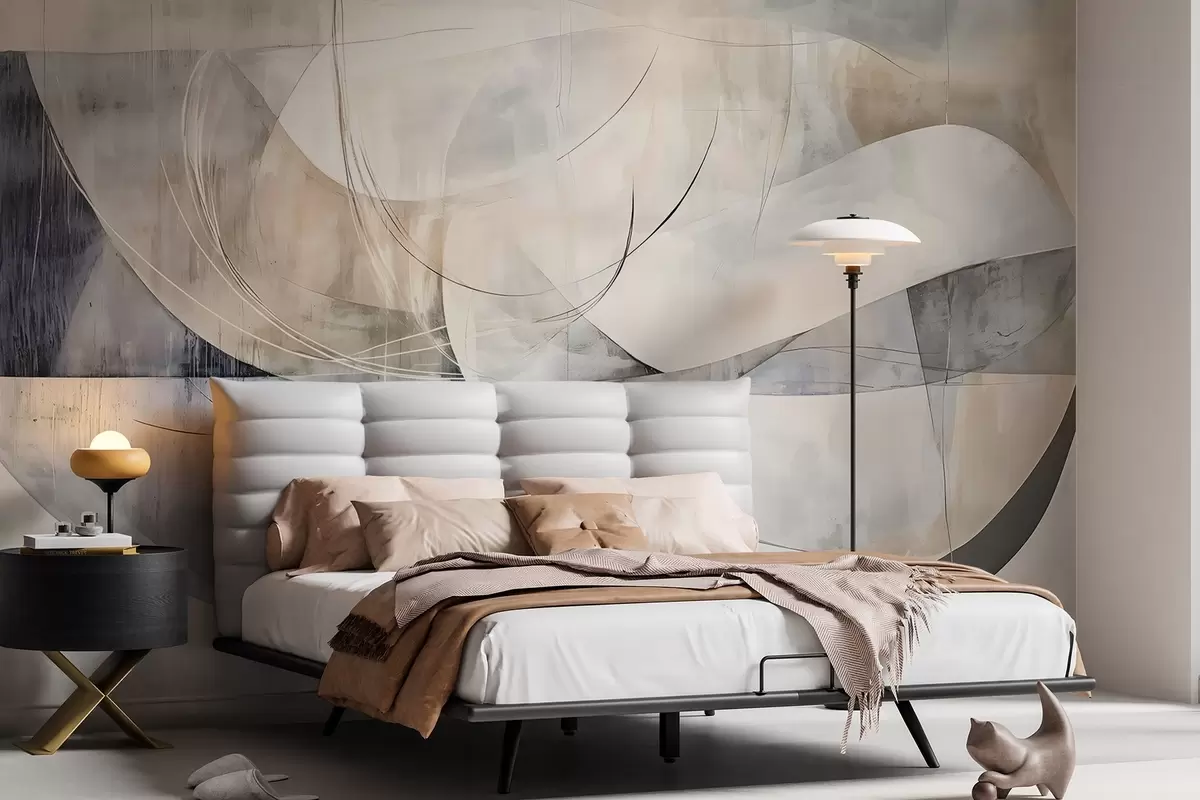 Fototapety Abstraktné tvary a formy v odtieňoch bielej, sivej, béžovej a modrej na rozmazanom textúrovanom pozadí Nr. w08461
