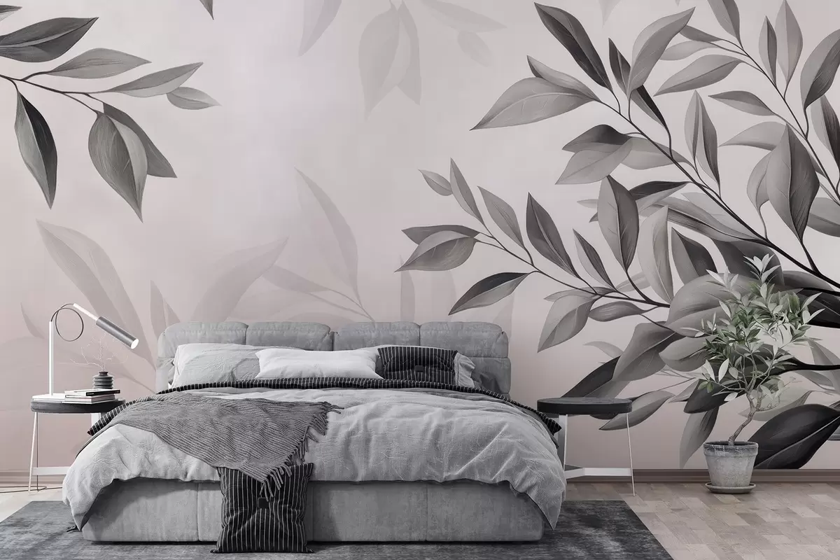 Fototapety Tmavomodré vetvy s listami na sivom pozadí Nr. w08499v1