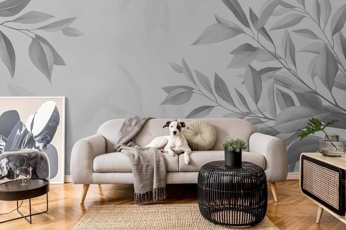Fototapety Sivé vetvy s listami na sivom pozadí Nr. w08499v3