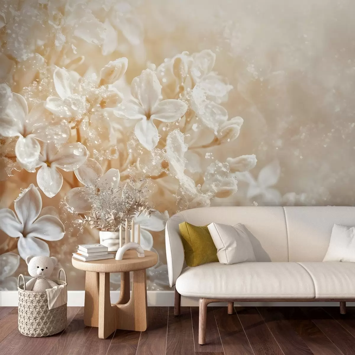 Fototapety Jemné biele lila kvety s jemným, žltým rozmazaným pozadím Nr. w08533