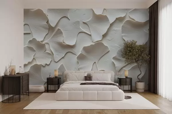 Fototapety Štuk s jemným reliéfom listov ginka na bielom pozadí Nr. w08560v1