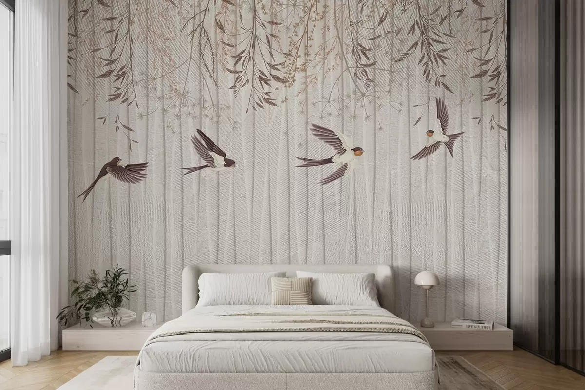 Fototapety Lietajúce vtáky na textúrovanom pozadí s púpavami a kvetmi Nr. w08566