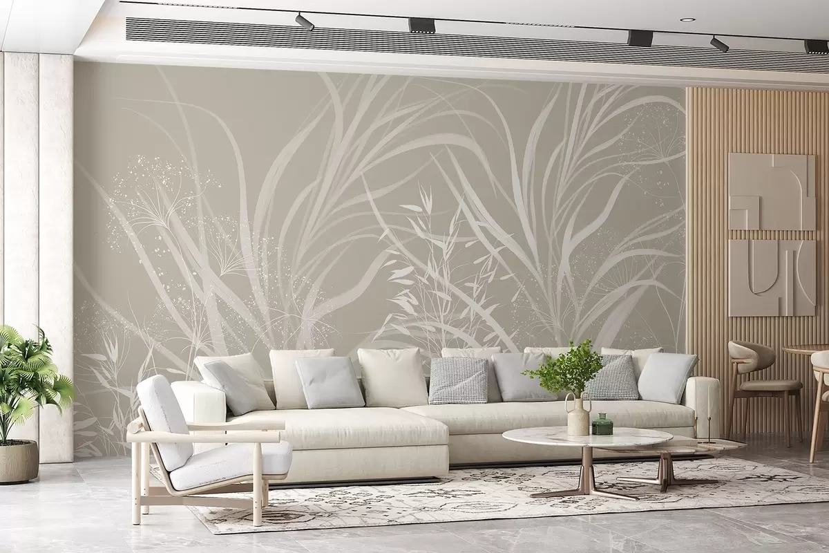 Fototapety Jemná moderná minimalistická biela kvetinová potlač na svetlom pastelovo-béžovom pozadí Nr. w08583