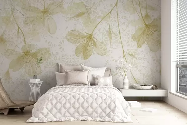 Fototapety Jemné žlté a biele kvety s dlhými stonkami a okvetnými lístkami na jemnom, rozmazanom texturálnom pozadí Nr. w08588v2