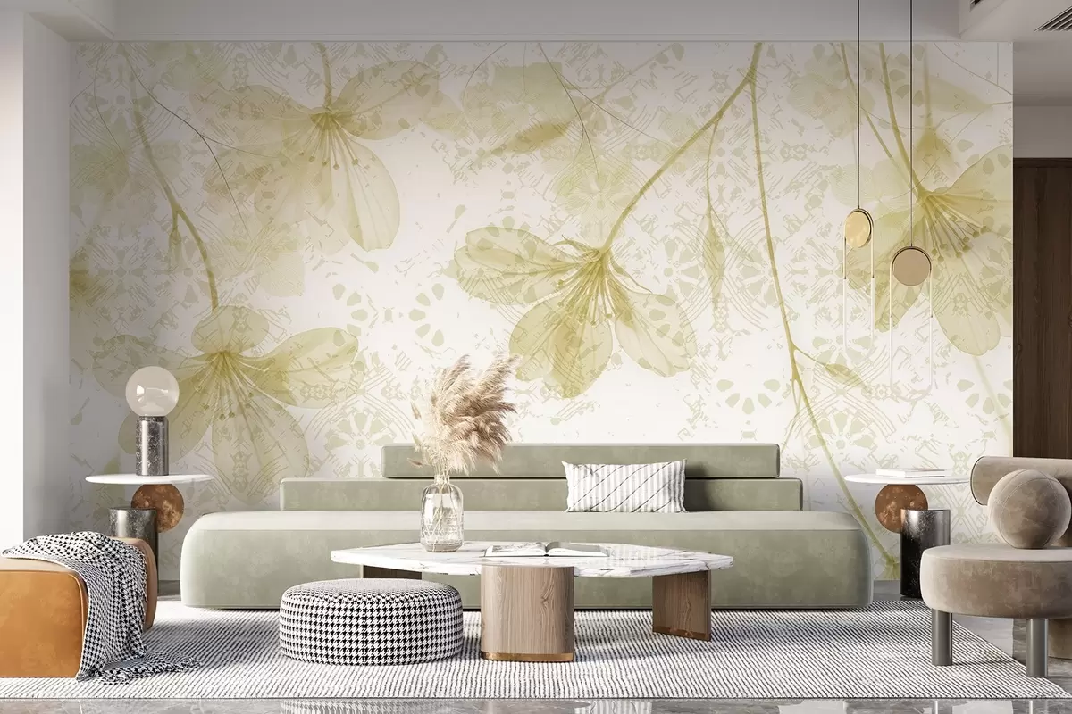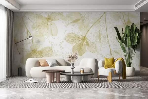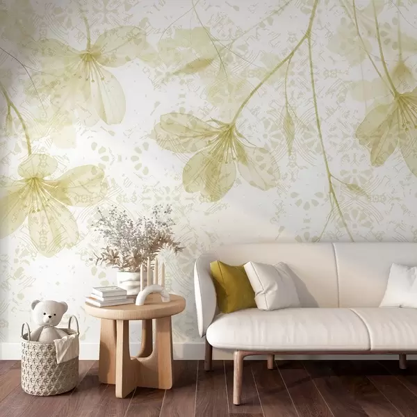 Fototapety Jemné žlté a biele kvety s dlhými stonkami a okvetnými lístkami na jemnom, rozmazanom texturálnom pozadí Nr. w08588v2