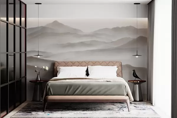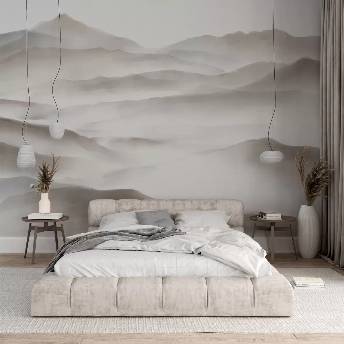 Fototapety Minimalistická horská krajina s kopcami a hmlou, ktorá vytvára pokojnú a atmosférickú tlač Nr. w08602