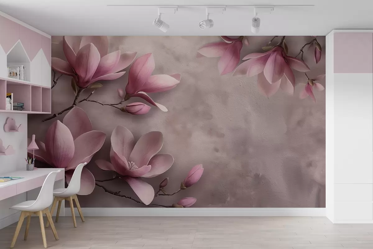 Fototapety Jemné ružové magnólie na betónovej stene Nr. w08636